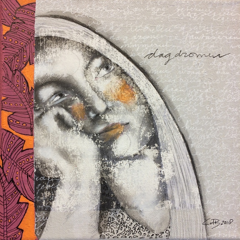 Dagdromen II gemengde technieken Acrylic on  canvas Formaat: 20 W x 20H cm Schilderij 879 Verkocht Date:6 maart 2018 Schilderijen 2018 Share000
