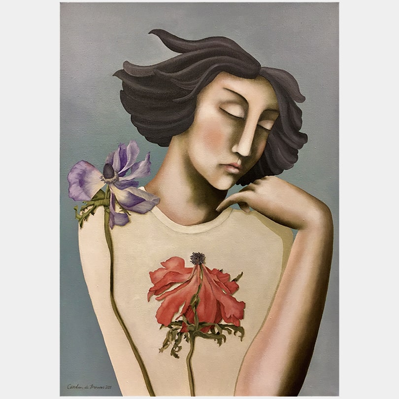 Verwelkende anemonen Oil on  canvas Formaat: 50 W x 70H cm Schilderij 920 Verkocht Date:30 oktober 2020 schilderijen 2020 Share000