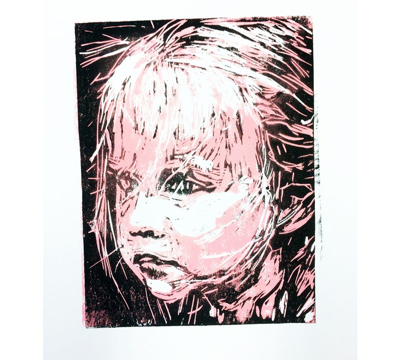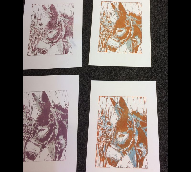Op basis van een foto of een eigen tekening maak je in twee dagdelen van telkens 3 uur een 2 kleuren linodruk op papier,